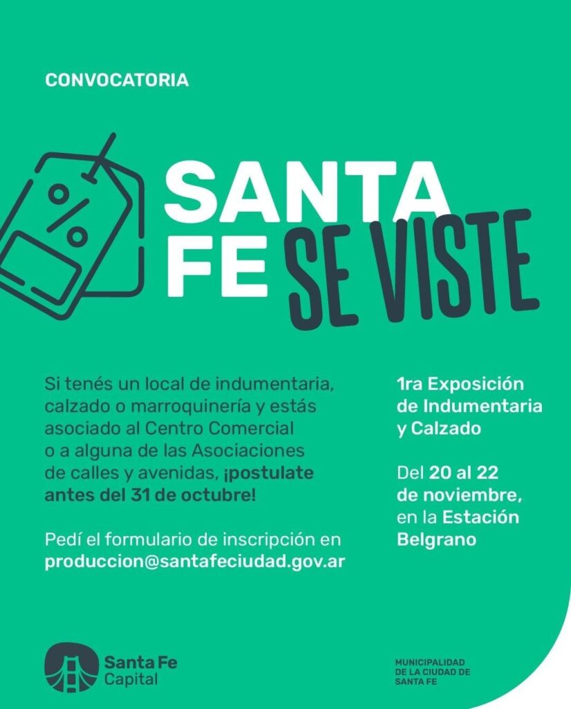 La Municipalidad de Santa Fe lanzó oficialmente “Santa Fe Se Viste”, una nueva propuesta comercial que reunirá a más de cien locales de indumentaria, calzado y marroquinería en la Estación Belgrano. La feria se realizará del 20 al 22 de noviembre, coincidiendo con el fin de semana largo, y ofrecerá descuentos, promociones y experiencias para los consumidores.